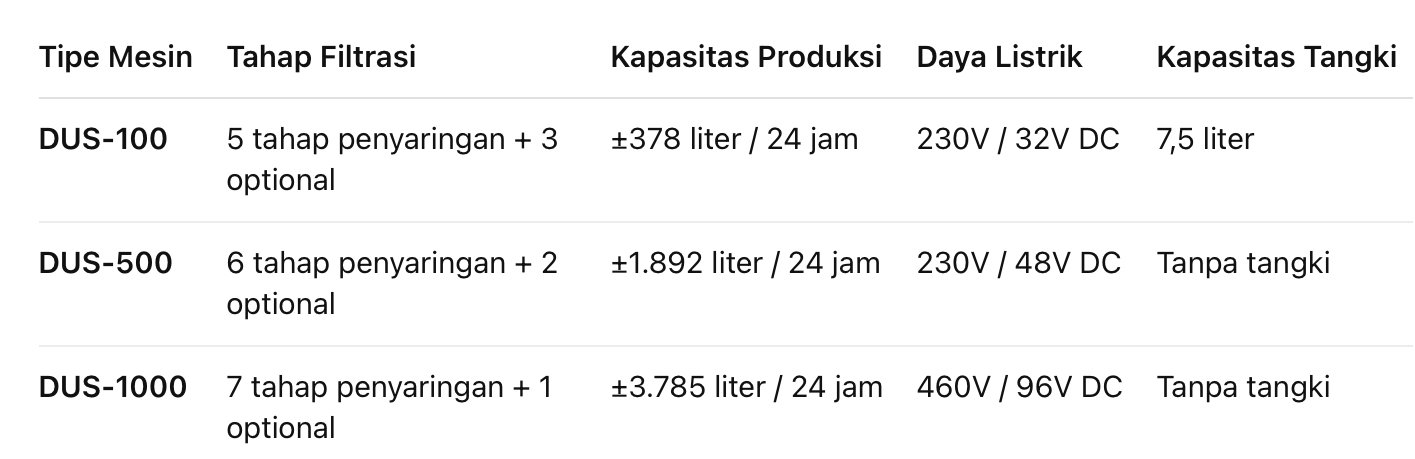 Dengan memahami perbedaan kapasitas ini, Anda dapat menentukan mesin RO yang paling sesuai sehingga sistem penyaringan air dapat bekerja secara efisien dan menghasilkan air minum yang bersih, sehat, dan siap konsumsi setiap hari.