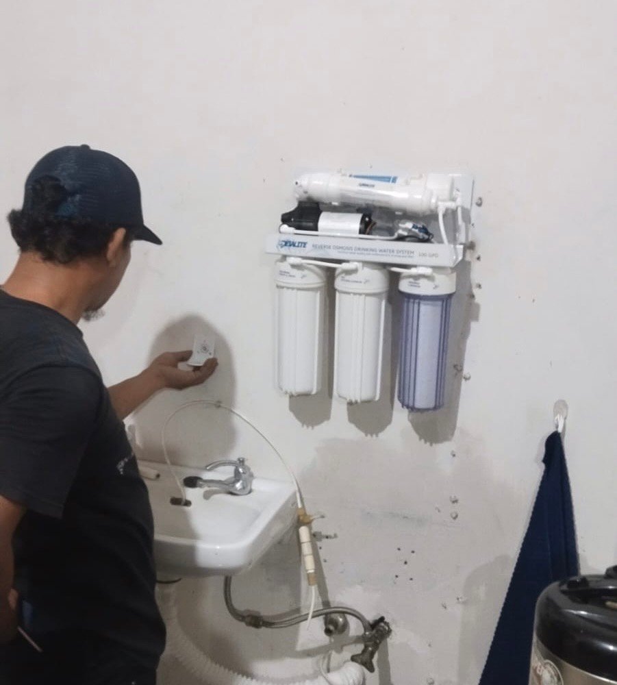 Pemasangan Mesin Air Minum Undersink 100 GPD 5 Step pada rumah tangga di wilayah Pondok Kelapa, Jakarta Timur