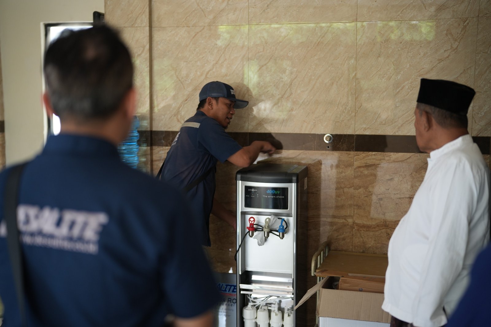 PT Toko Filter Air melakukan pemasagan Mesin Air Minum pada Masjid Al-Hikmah sebagai bentuk pelaksanaan CSR perusahaan