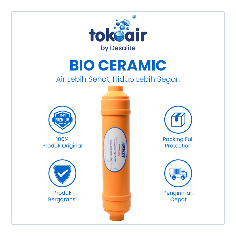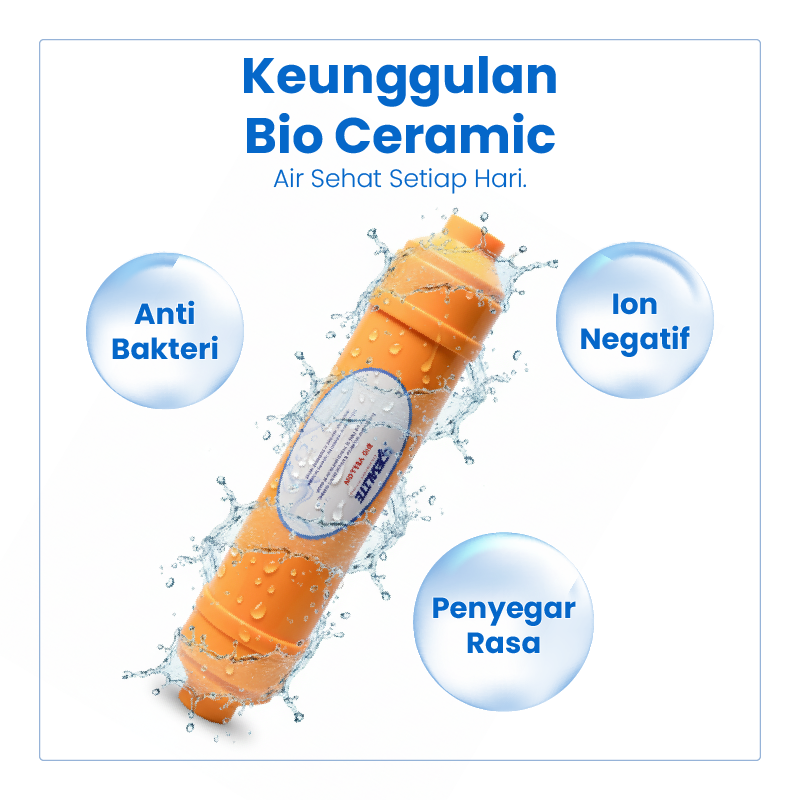Bio Ceramic adalah filter tambahan pada sistem Reverse Osmosis (RO) yang berfungsi untuk membantu mengembalikan mineral alami ke dalam air setelah proses penyaringan membran RO. Filter ini biasanya dipasang pada tahap akhir (post filter) sebelum air keluar ke kran.