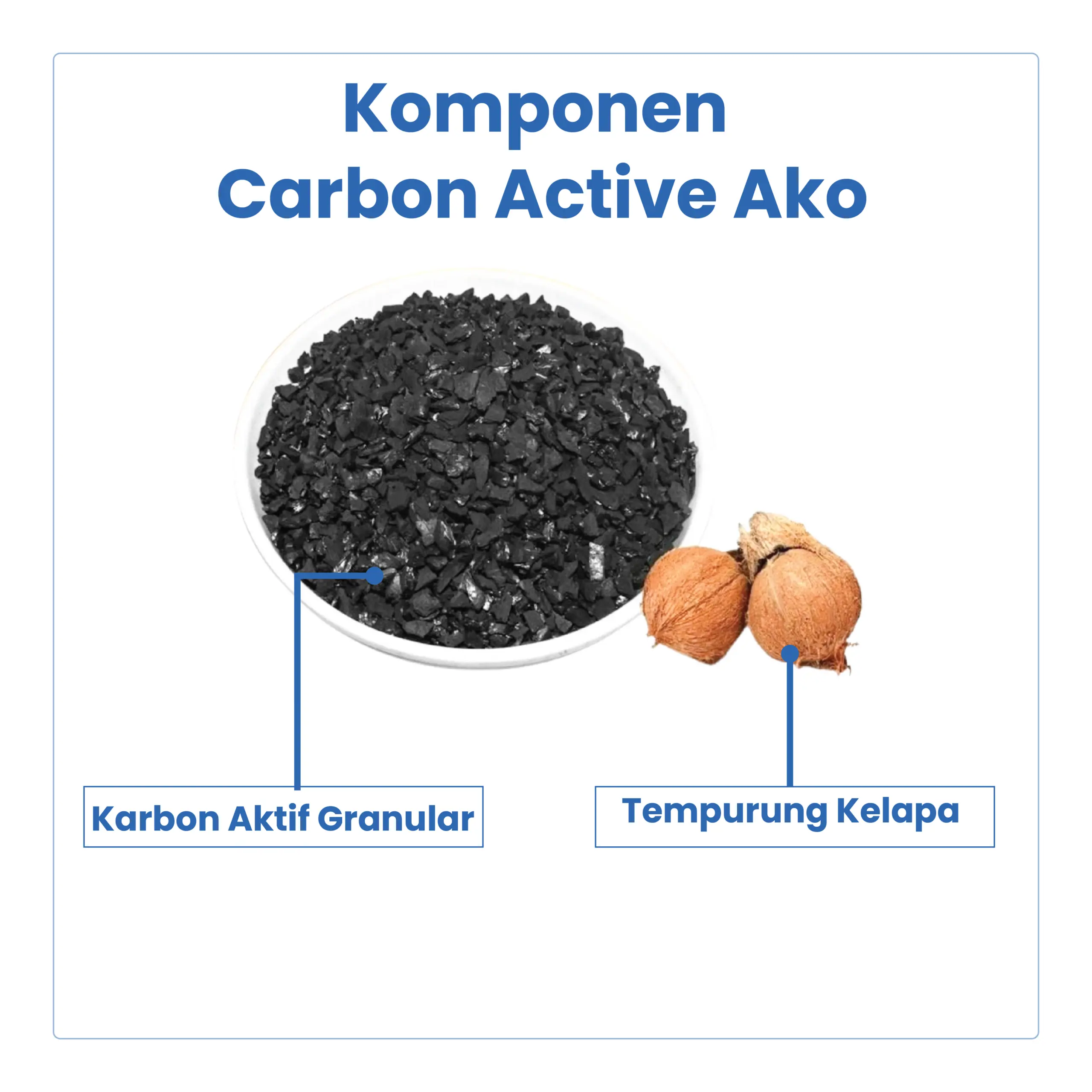 Carbon Active AKO adalah media filtrasi berbahan karbon aktif berkualitas yang digunakan pada sistem water treatment untuk menyerap bau, rasa, warna, klorin, dan zat organik dalam air. Media ini sangat efektif meningkatkan kualitas air dan umum digunakan pada filter air rumah tangga hingga komersial.