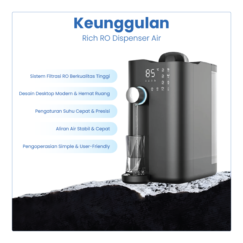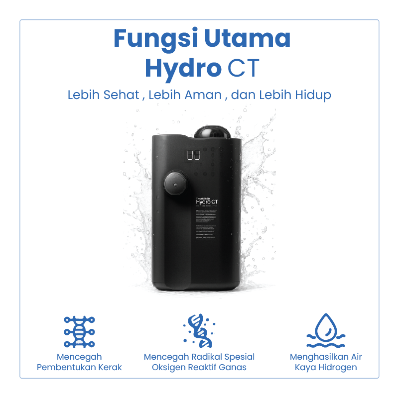 Dilengkapi sistem filtrasi 5 tahap dan teknologi UV Sterilization, Hydro CT menghasilkan air lebih murni, jernih, higienis, dan aman untuk dikonsumsi setiap hari tanpa perlu membeli air galon.