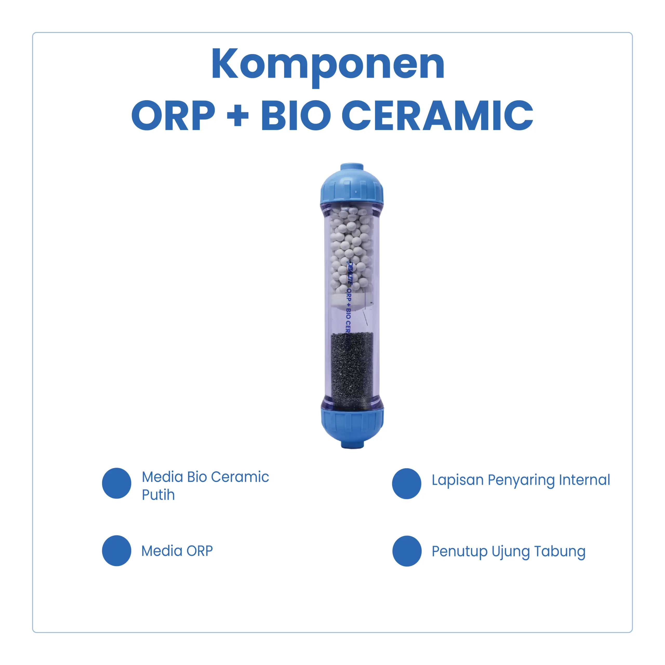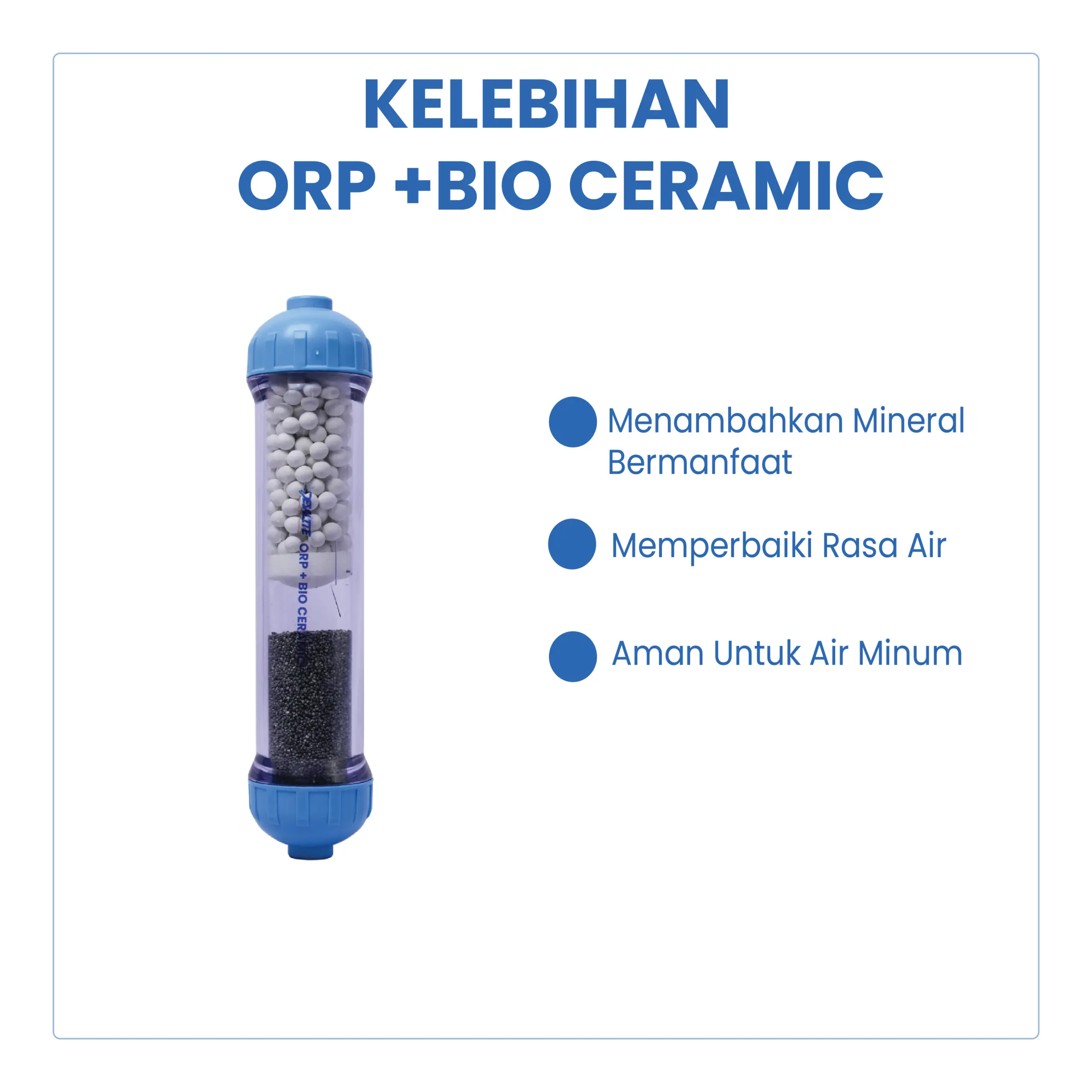 ORP + Bio Ceramic adalah media filtrasi lanjutan yang digunakan pada sistem Reverse Osmosis (RO) dan water treatment untuk membantu menstabilkan nilai ORP (Oxidation Reduction Potential), memperbaiki kualitas air, serta menambah kandungan mineral alami. Media ini cocok digunakan sebagai tahap akhir (post-treatment) untuk menghasilkan air yang lebih segar dan nyaman dikonsumsi.