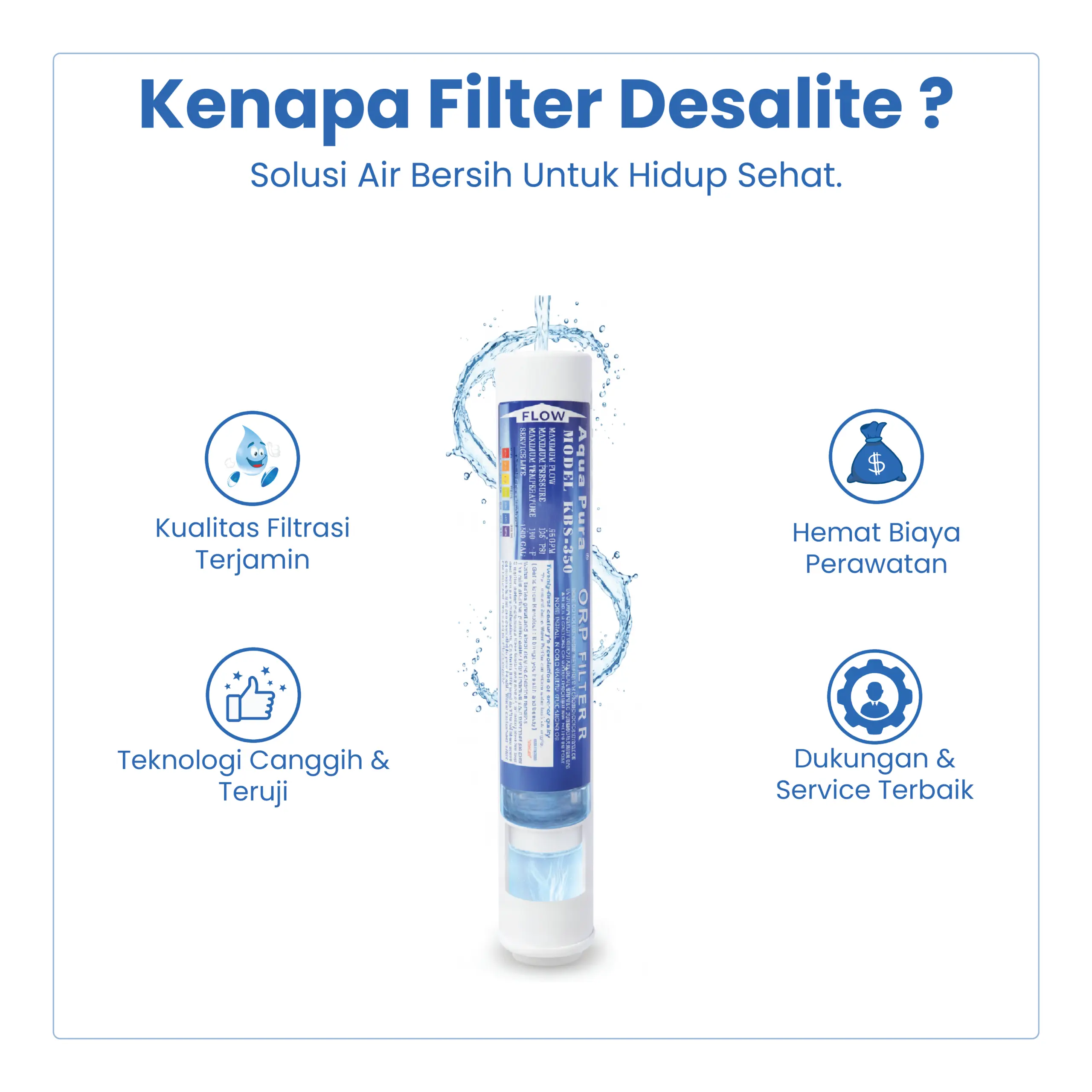 ORP Filter KBS 350 merupakan filter air lanjutan yang berfungsi untuk menurunkan nilai ORP (Oxidation Reduction Potential) sehingga menghasilkan air dengan ORP negatif yang lebih segar dan berkualitas.